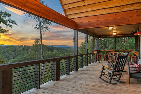 ONLY CABIN offers: THE PORCH BAR "Cigar, Whiskey, Wine, Beer BAR" with a Breathtaking views.Cheers & Enjoy!